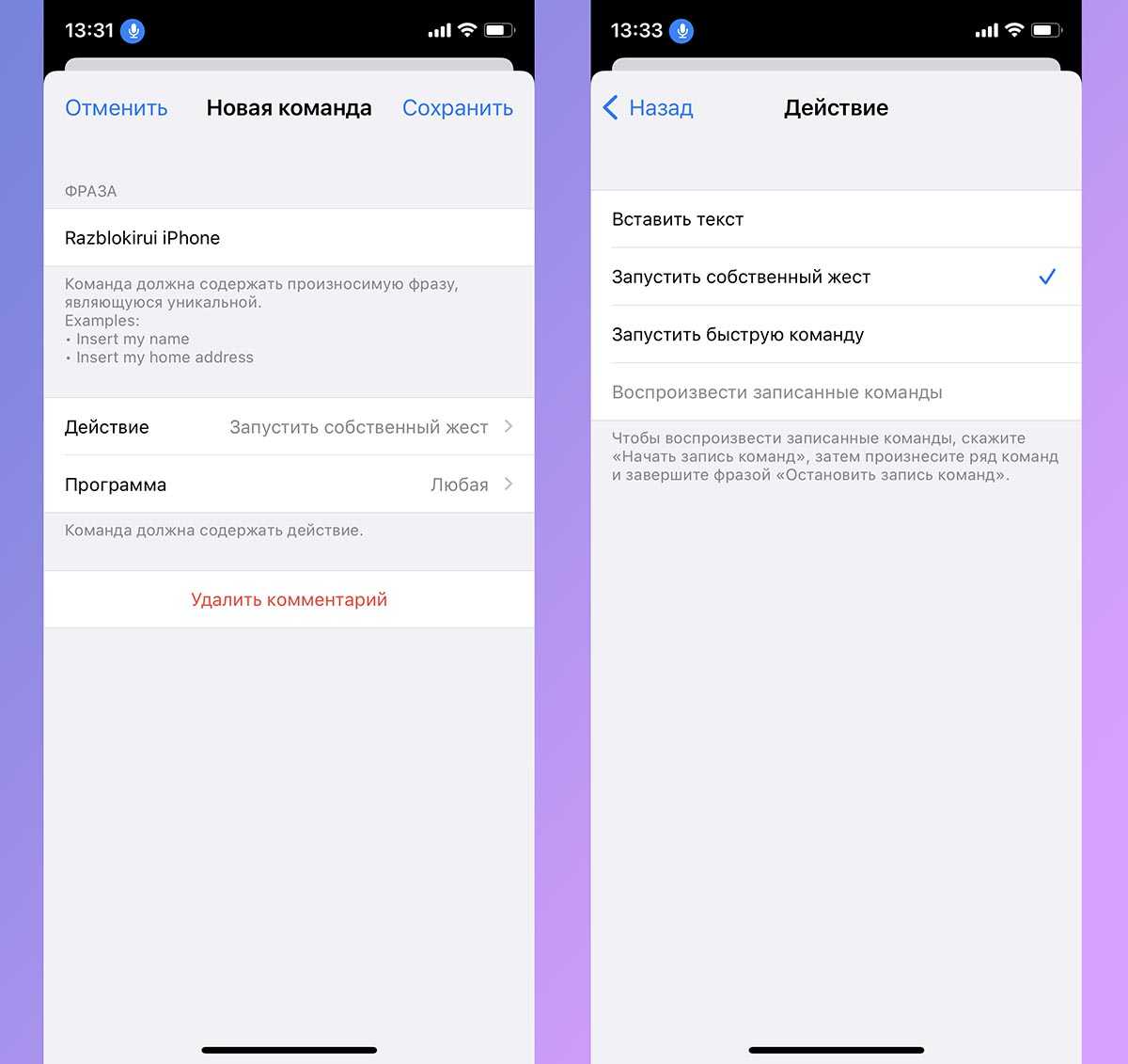 Если все сделано верно, на экране будет повторен введенный жест и устройство разблокируется. Теперь можно снимать блокировку устройства заданной голосовой командой.