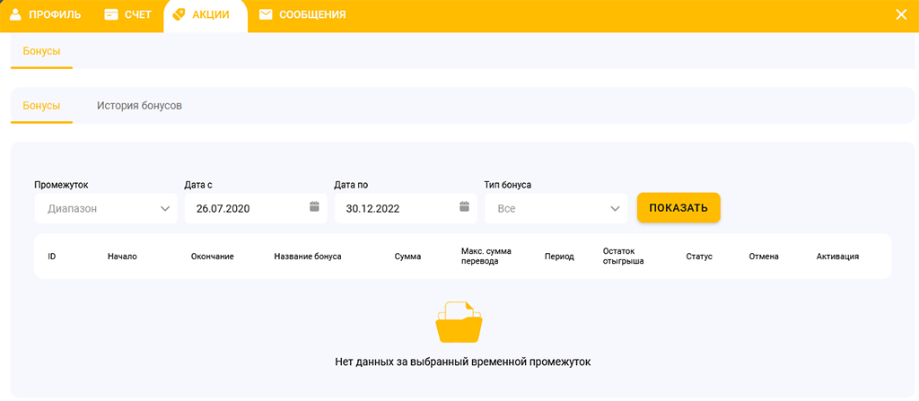 Получившаяся сумма автоматически будет списана со счета, и остается ждать результата. Когда все сыграют, участнику автоматически зачислится выигрыш. А сделанные ставки можно просмотреть в личном кабинете, раздел «История».