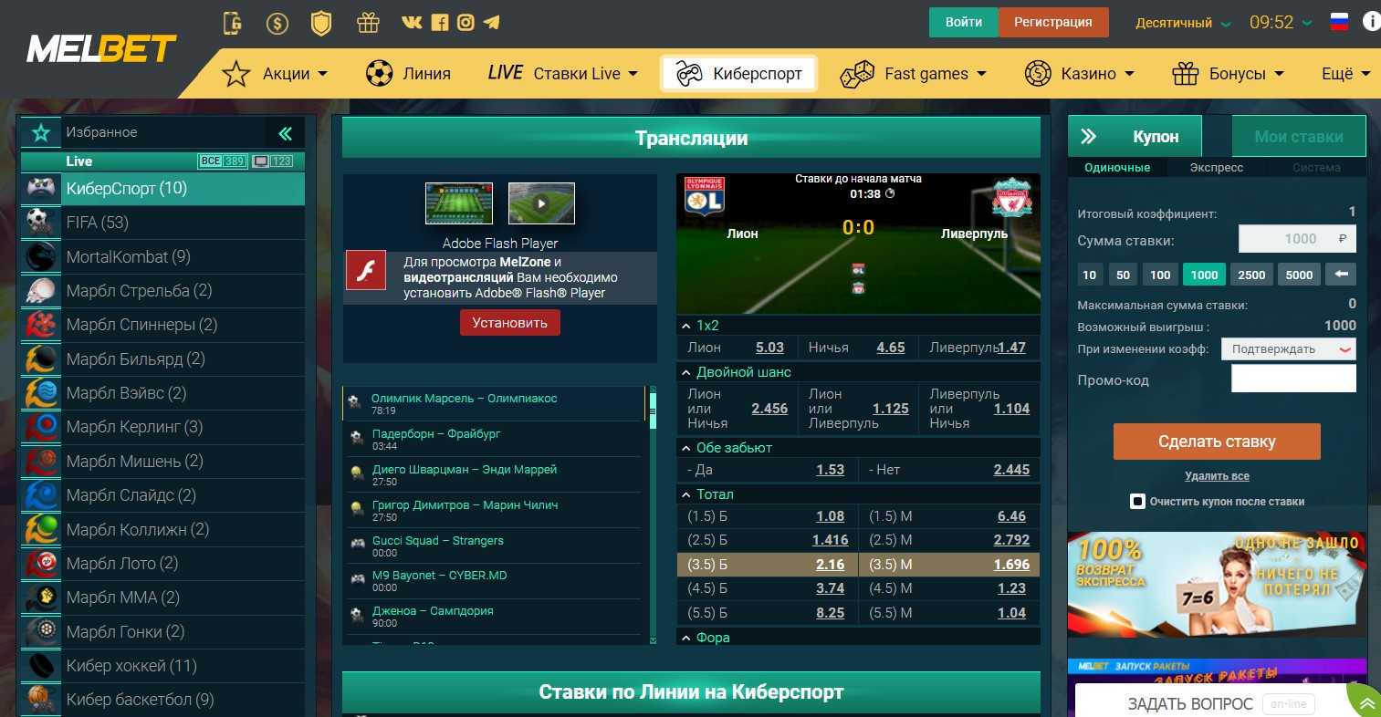 Кнопка перехода на этот раздел находится в самом верху экрана в главном меню, обозначенном желтой полосой. Далее Вашему вниманию будет представлен перечень тех событий, на которые идет прием ставок в режиме онлайн. Выбрав определенное из них и определившись с тем, с каким исходом оно завершится, требуется определиться с суммой ставки на него. Помните, что мелбет ставки в режиме онлайн доступны только зарегистрированным пользователям.