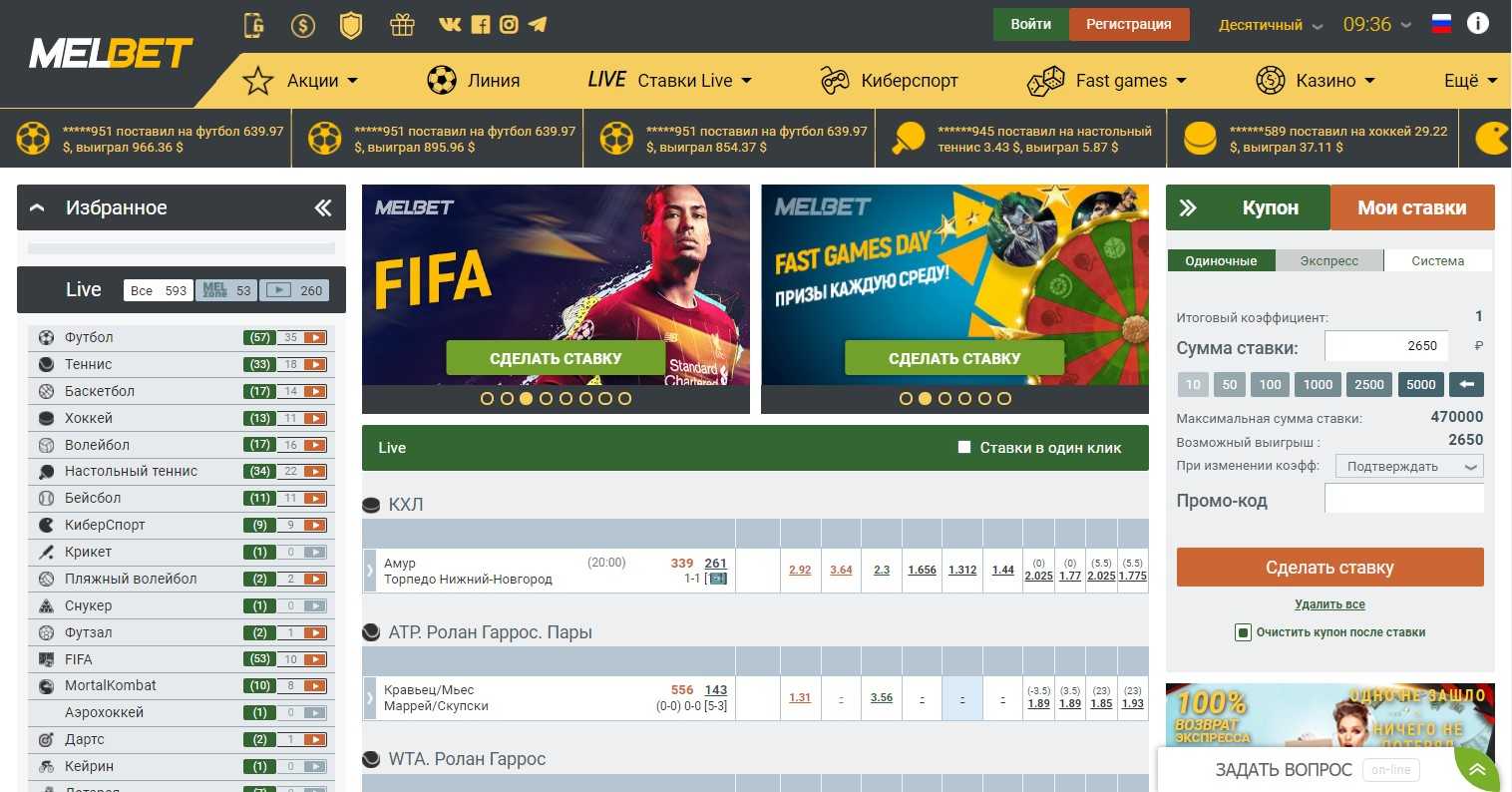 Пользователь может выбирать из огромного количества самых разнообразных ставок на официальном сайте Мелбет.