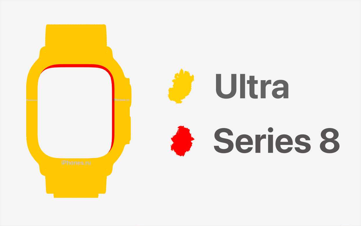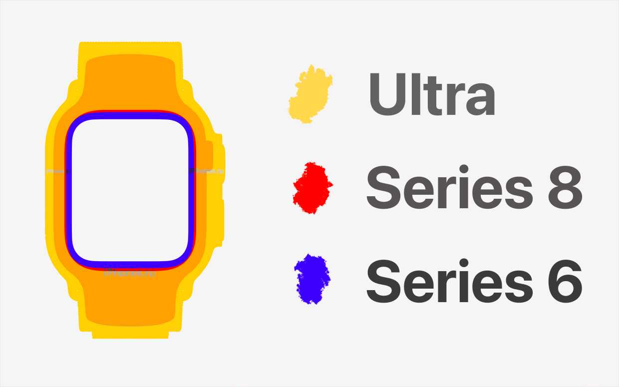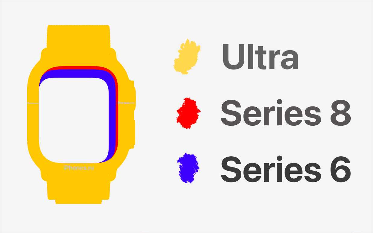 Получается, разница между Series 8 и Ultra равна 14 пикселям в ширину и 18 пикселям в длину. Это приблизительно на больше 3,5% в каждую сторону или на 6,9% увеличенной площади экрана