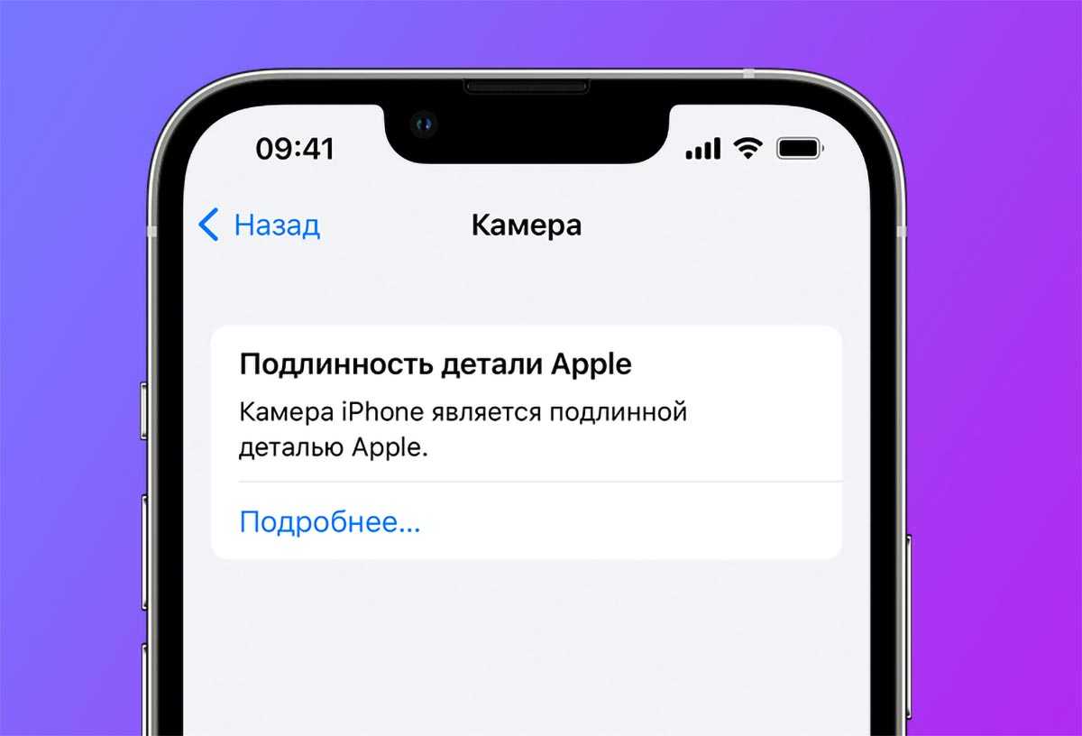 Система различает оригинальные компоненты Apple и запчасти-аналоги. В случае официального ремонта в авторизованном СЦ будет доступна подробна информация и дата обращения с поломкой.