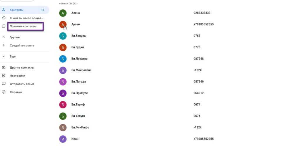 Найдите пункт «Похожие контакты». Кликните по нему и нажмите «Объединить», чтобы система автоматически удалила дубликаты. При этом нужно, чтобы на вашем смартфоне была настроена синхронизация, чтобы информация на сайте отобразилась максимально обновленная, а как только вы удалили дубли, она обновилась и на телефоне.