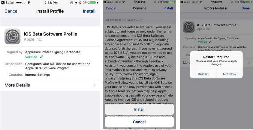 Более того, для установки вам даже не нужен компьютер. Зарегистрироваться в программе по бета-тестированию можно прямо с устройства с iOS, а затем через него же скачать обновление.