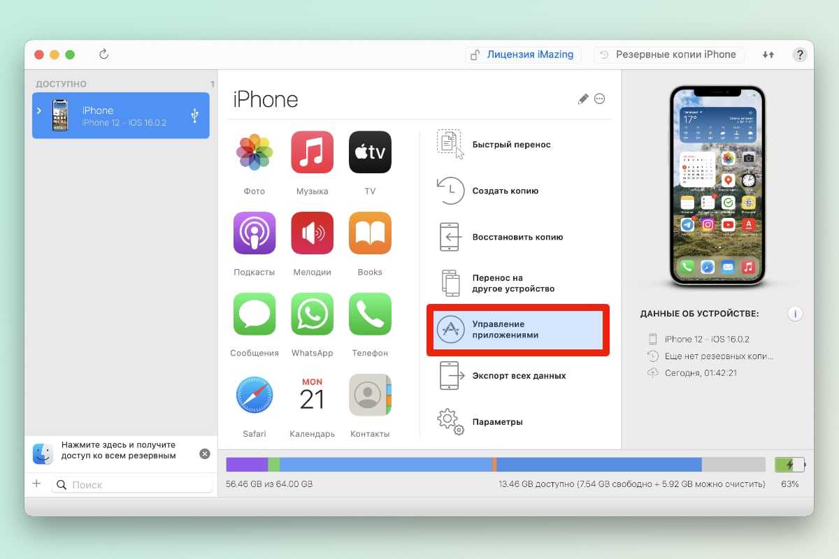 Здесь опять на помощь приходит iMazing. Порядок действий практически такой, как и в первом методе.