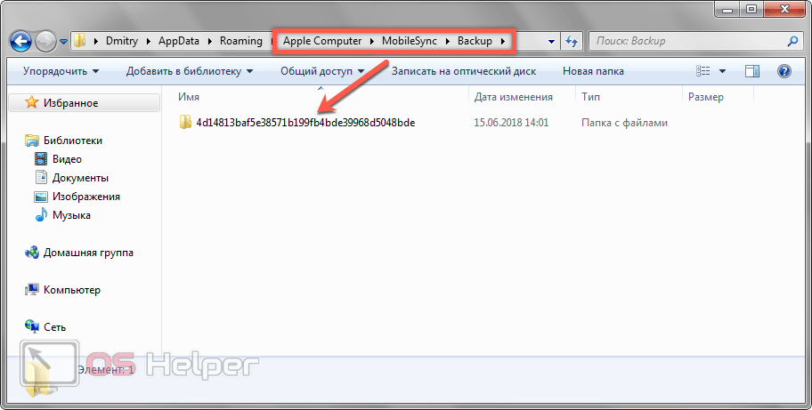 С более новыми версиями «Виндовс» работать проще. Достаточно зайти в раздел жесткого диска, на которой установлена ОС. Далее перейти в: Пользователи/имя/AppData/Roaming/Apple Computer. Как и раньше, необходимо найти папку MobileSync, а в ней — «БэкАп».