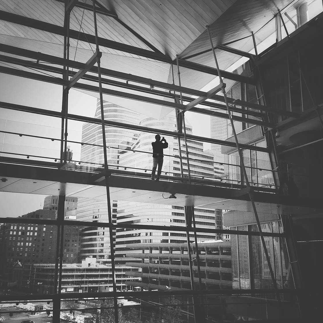 Попробуйте посмотреть прямо вверх на здание и поиграть с тем, какую часть неба вы включаете или исключаете. Или посмотрите вниз с высокого здания – это может на мгновение сбить зрителя с толку неожиданным и забавным образом.