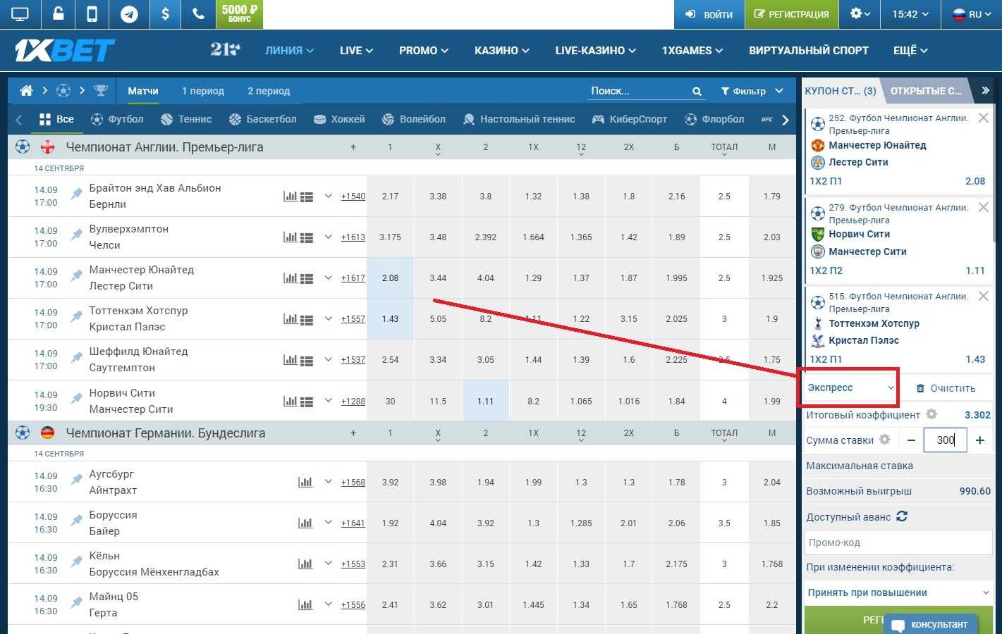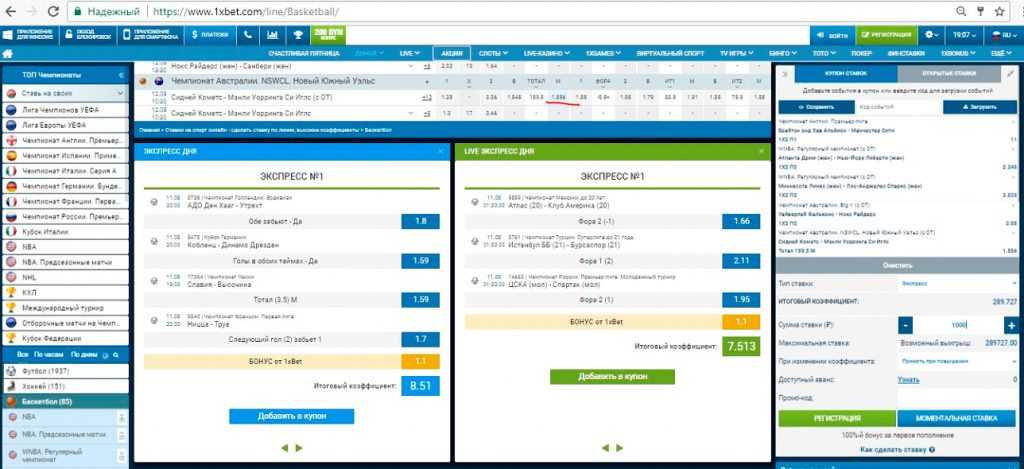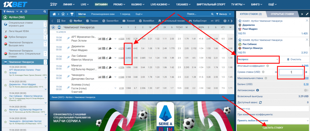 Как поставить экспресс на 1xBet