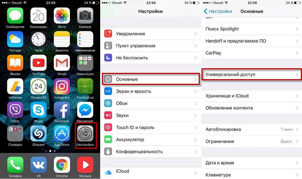 Находим “Универсальный доступ” и активируем “AssistiveTouch”