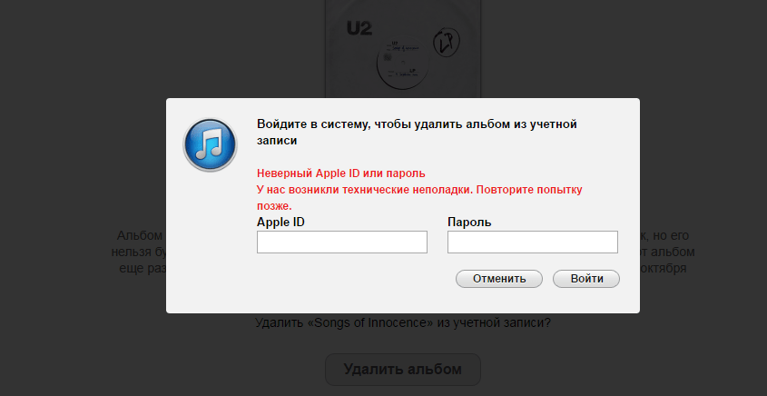 Повторно загрузить альбом U2 бесплатно после такого удаления уже не удастся
