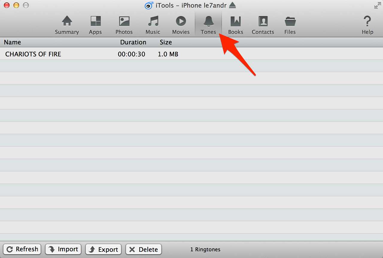 iTunes при загрузке рингтонов их переименовывает, поэтому отыскать подлежащий удалению файл по названию невозможно. Если у вас много собственных рингтонов, советуем скопировать все через iFunBox на жесткий диск компьютера, отыскать нужный, а уже потом найти файл с таким же названием в данной папке.