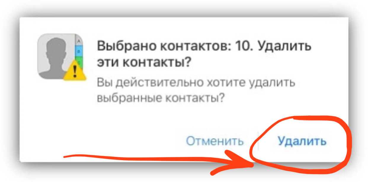 - Подтвердите ваше намерение удалить выбранные контакты.