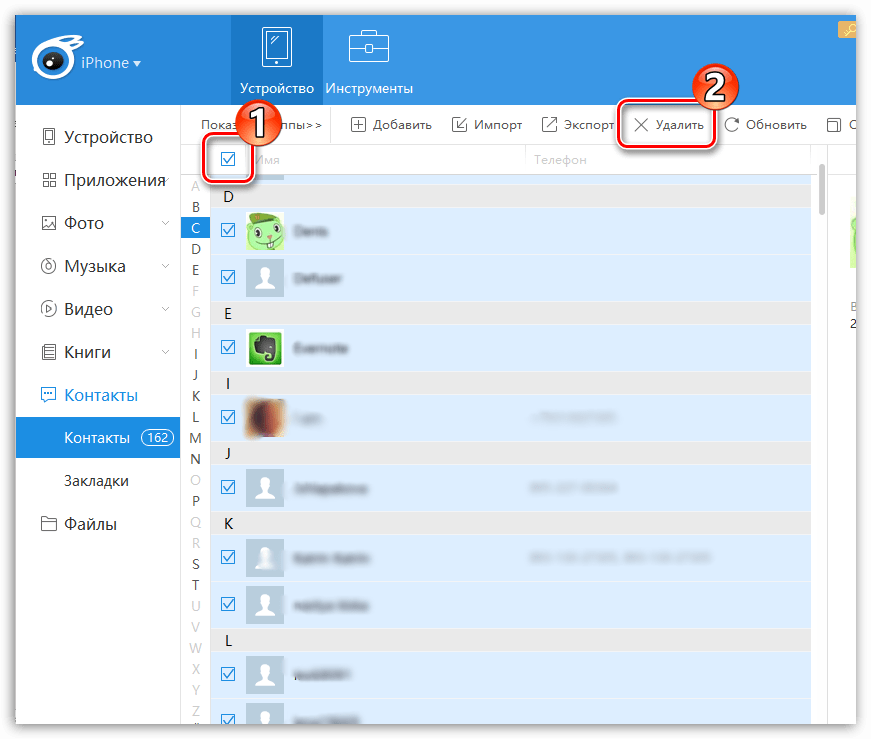 Удаляем контакты с iPhone