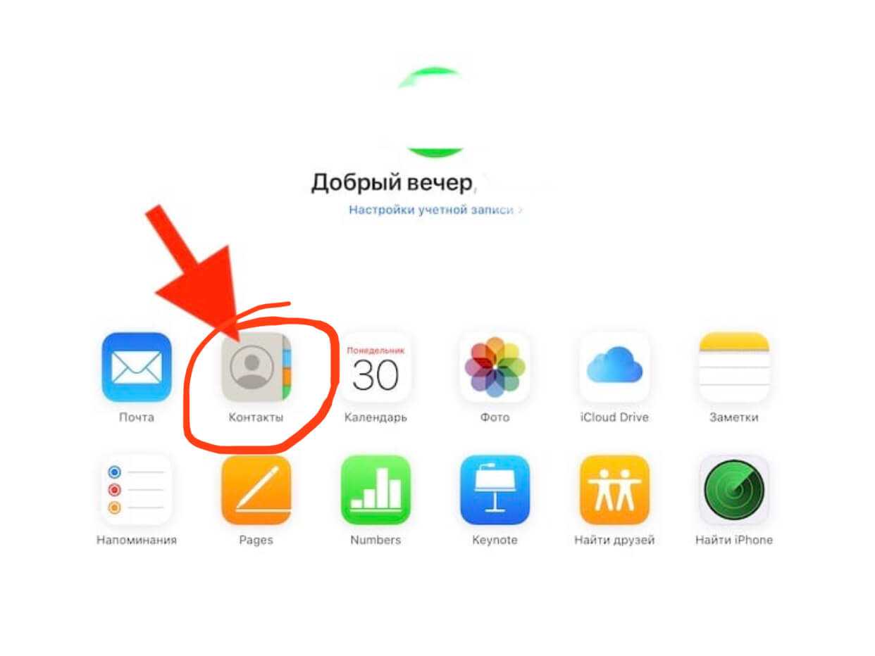 - Попав в облако iCloud, выберите раздел «Контакты».