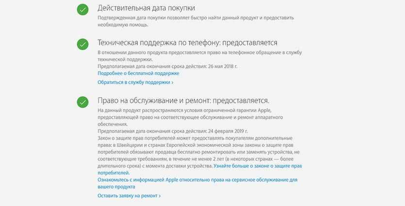 В противном случае вы сможете лицезреть, сколько осталось до конца гарантии, а также прочую информацию. Проверить дату производства iPhone на официальном сайте невозможно. Кстати, этот метод также подходит для определения подлинности, т. к. отображаются лишь официальные номера.