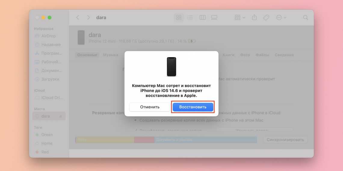 Теперь мы подготовим ваш iPhone к установке предыдущей версии iOS, выполнив следующие действия:
