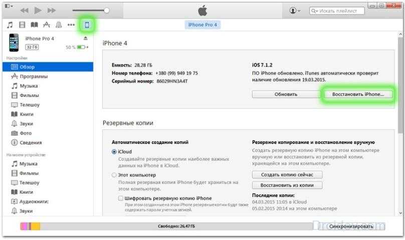 Перепрошивка айфона через iTunes