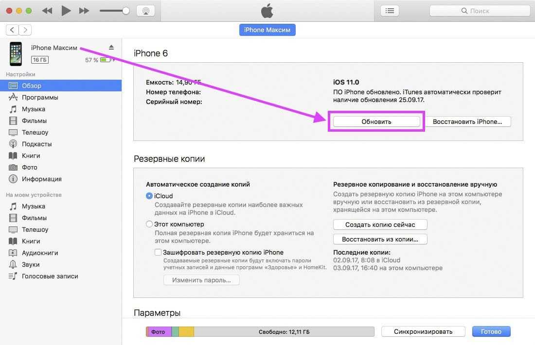 ► Резервная копия для восстановления данных iPhone или iPad. В процессе обновления все данные с iPhone будут удалены.