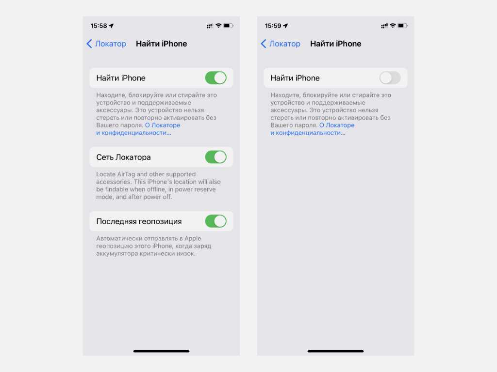 ❸ Далее важно исключить мобильное устройство из «Локатора». Нужно открыть меню «Настройки» > Apple ID > «Локатор» > «Найти iPhone» («Найти iPad»), перевести в неактивное положение переключатель «Найти iPhone» («Найти iPad») и подтвердить это действие вводом пароля от Apple ID