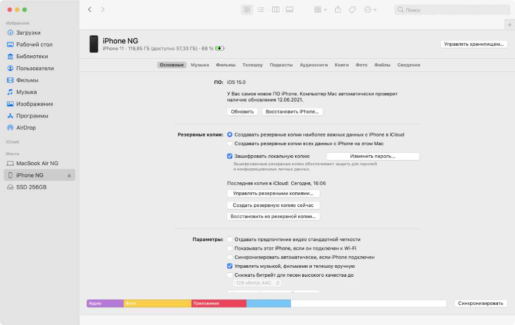 Если вы используете macOS Catalina или более позднюю версию, откройте Finder и щелкните iPhone на боковой панели, а если вы используете более старую версию для компьютера Mac или Windows, откройте iTunes.