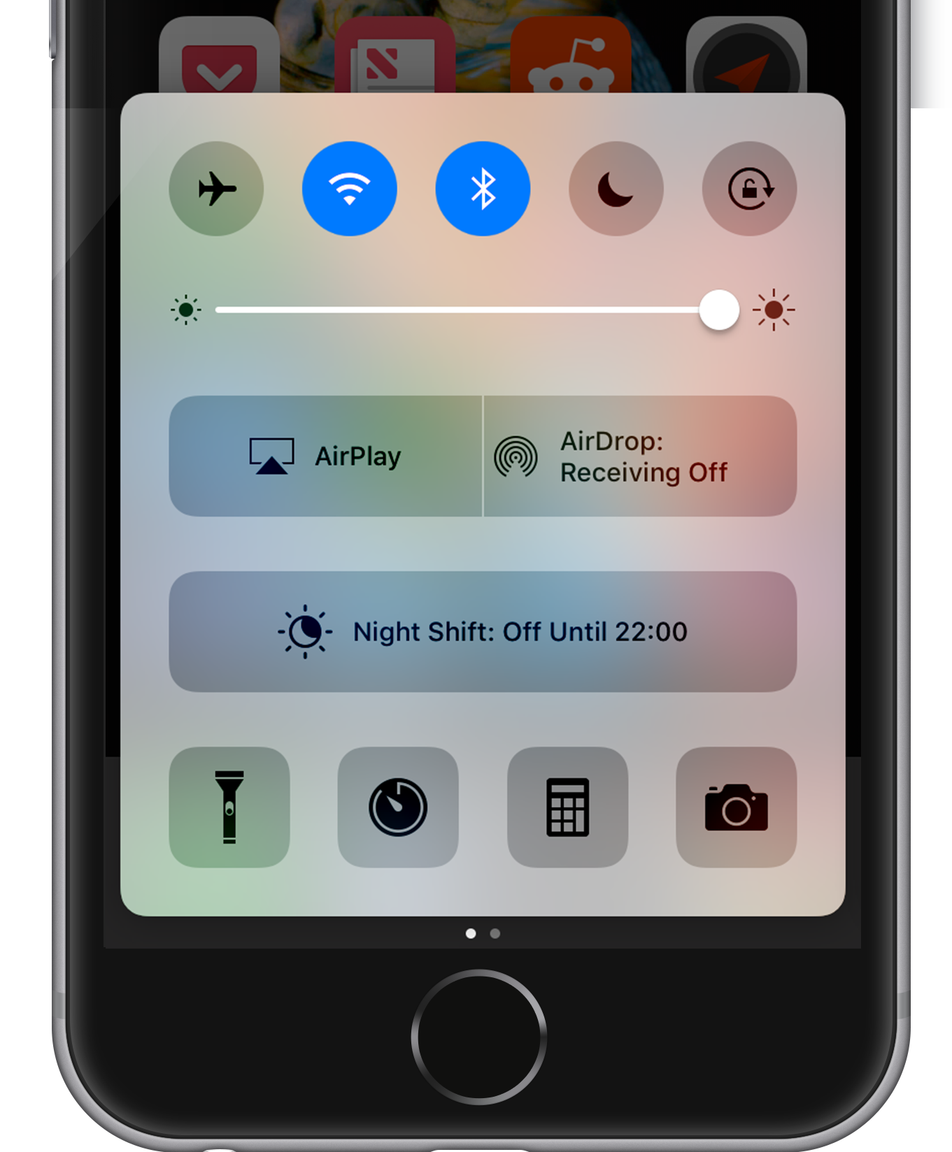 На панель управления вынесены основные команды, которые чаще всего использует пользователь. Таким образом, нет необходимости переходить в настройки, чтобы получить доступ к этим функциям. Достаточно открыть панель управления и выбрать соответствующую команду, например, Wi-Fi, Bluetooth или AirDrop.