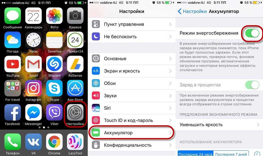 Как выйти из режима энергосбережения на айфоне?