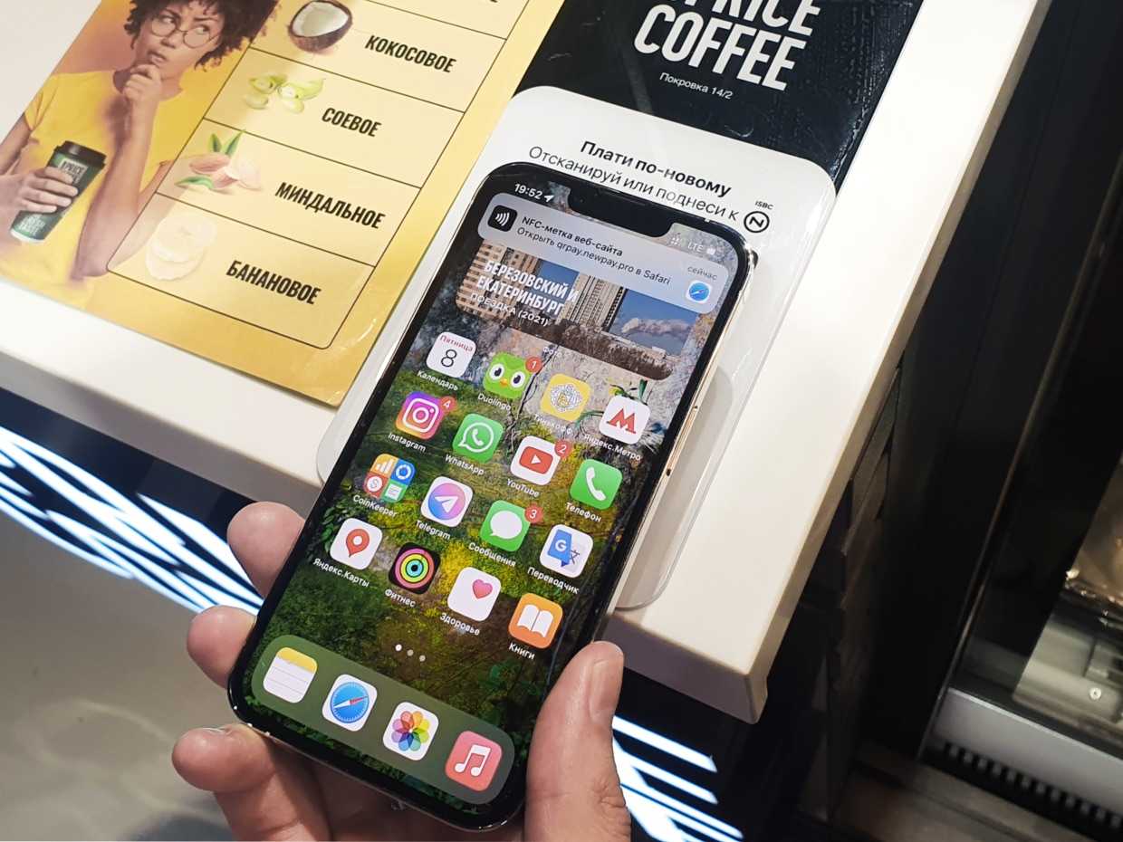 NFC технология позволяет совершать покупки при помощи телефона. Доступна она на всех современных версиях iPhone, начиная с 6 серии, а также на умных часах. Чтобы воспользоваться сервисом, нужно настроить его на айфоне (инструкции по подключению представлены выше).
