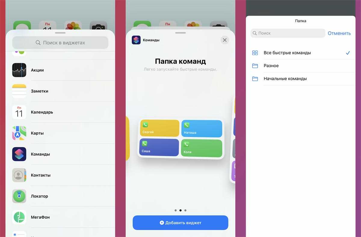 Создайте нужные автоматизации для вызова абонентов, как в предыдущем способе. Однако, вместо добавления ярлыка для каждого скрипта добавьте виджет приложения Команды на рабочий стол.