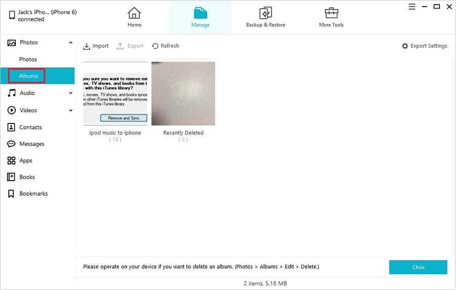 Затем iPhone Transfer отобразит все ваши фотографии и альбомы iPhone в своем интерфейсе.