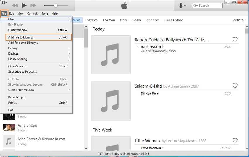 Первоначально все музыкальные файлы необходимо внести в медиатеку: