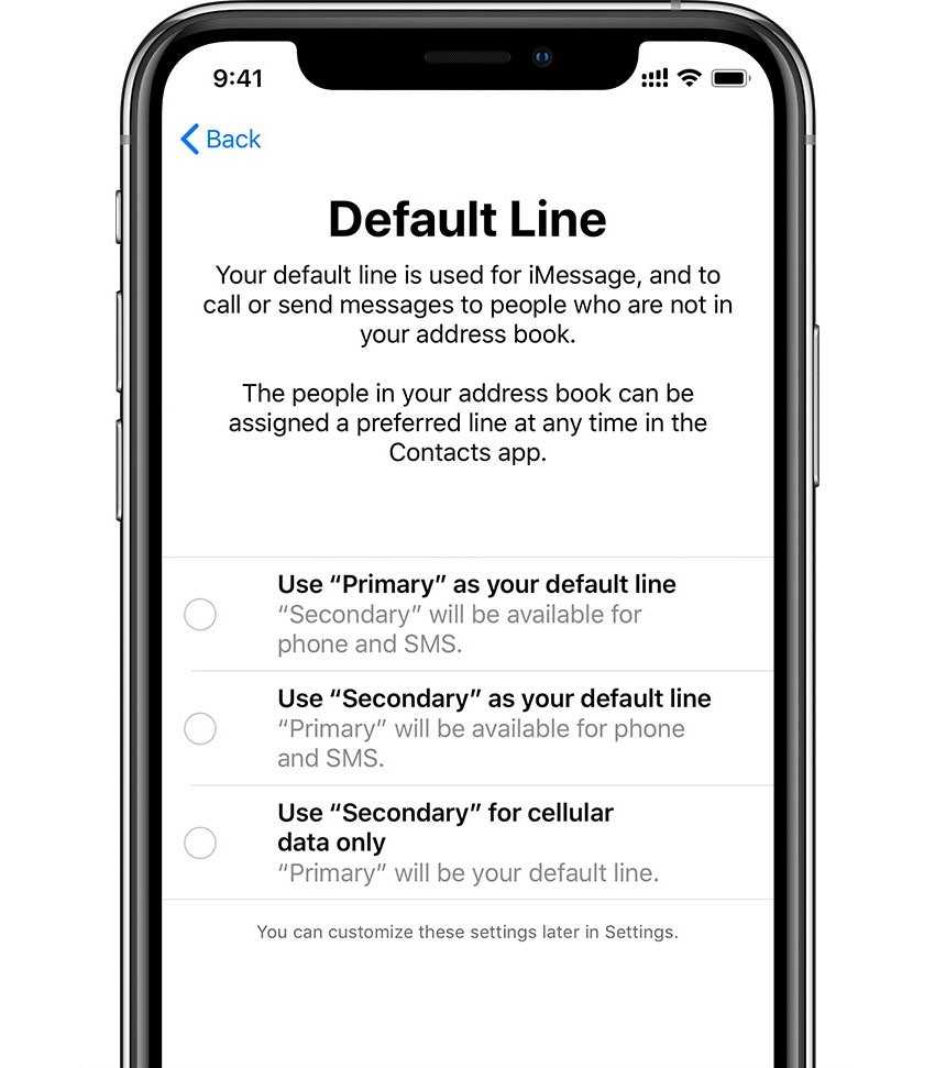 - «Первичный» — сим-карта используется только для звонков, SMS, мобильного интернета, iMessage и FaceTime. Вторая симка в этом варианте будет использоваться только для звонков и СМС-ок;