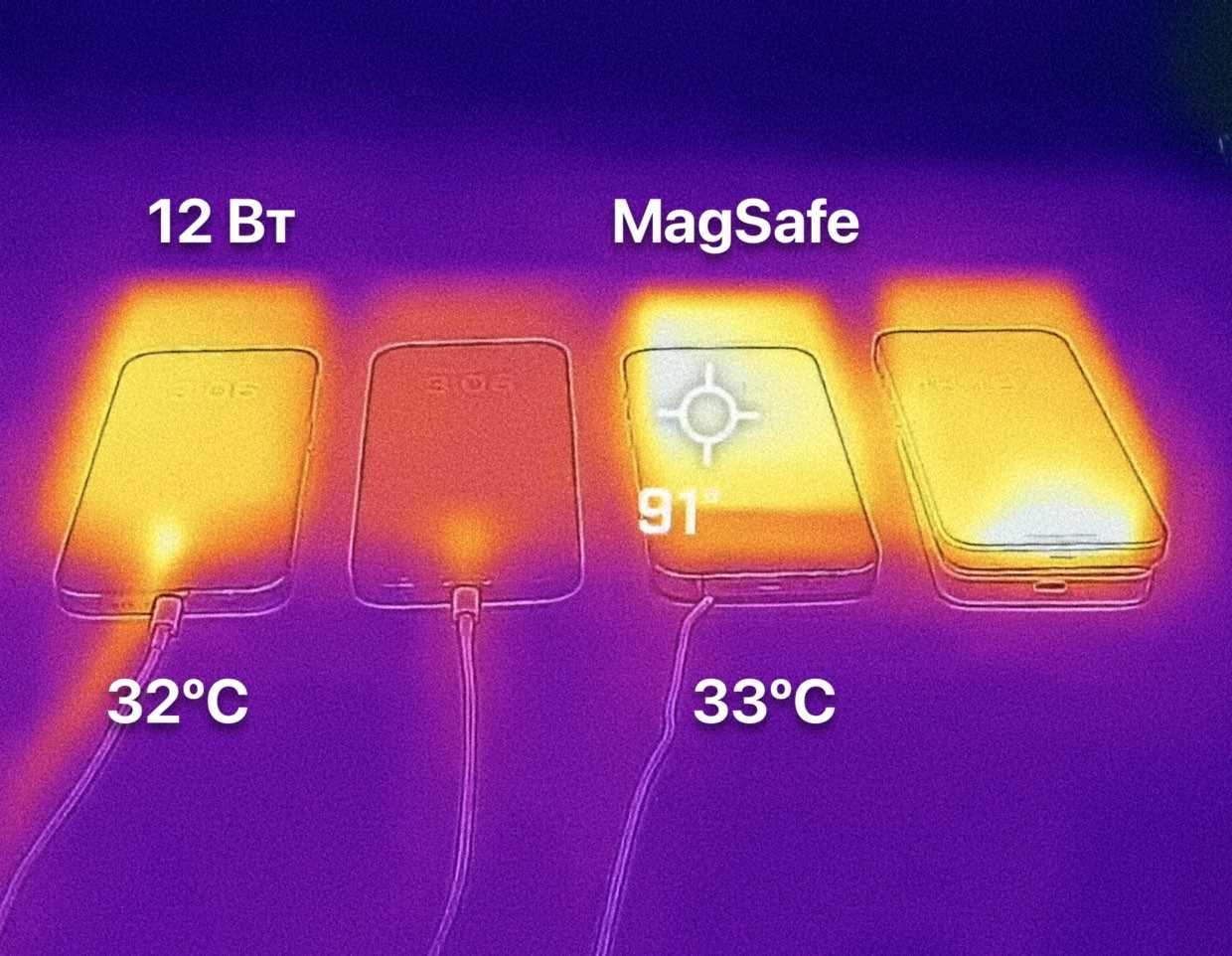 Вот простой эксперимент, при котором производились непрерывные замеры температуры устройства во время зарядки разными способами.