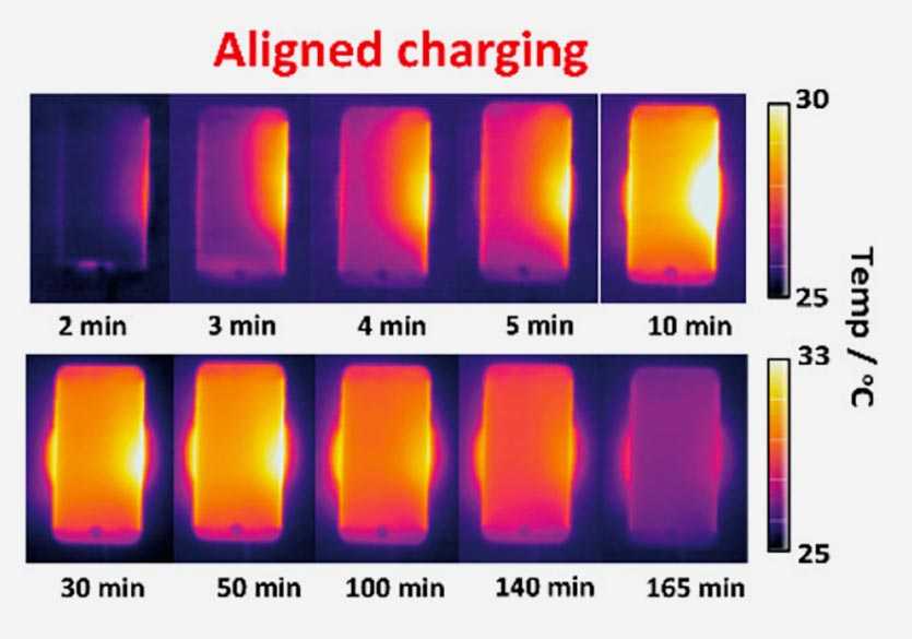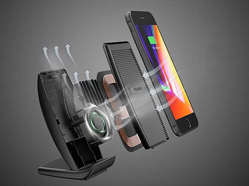 Поскольку зарядное устройство и смартфон полностью соприкасаются друг с другом, выделяемое станцией тепло передается за счет простой теплопроводности и конвекции.