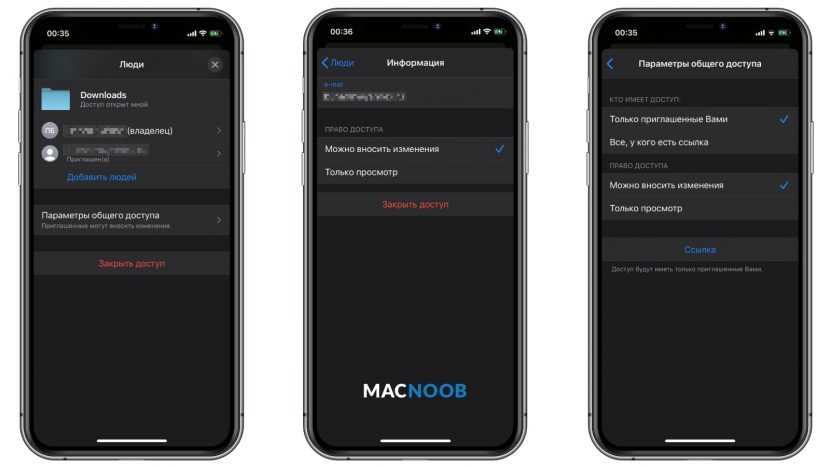 Выберите «Поделиться» и откроется возможность добавлять или удалять пользователей, а также назначать права доступа к каждой папке: только приглашённые или любой человек, у кого есть ссылка.