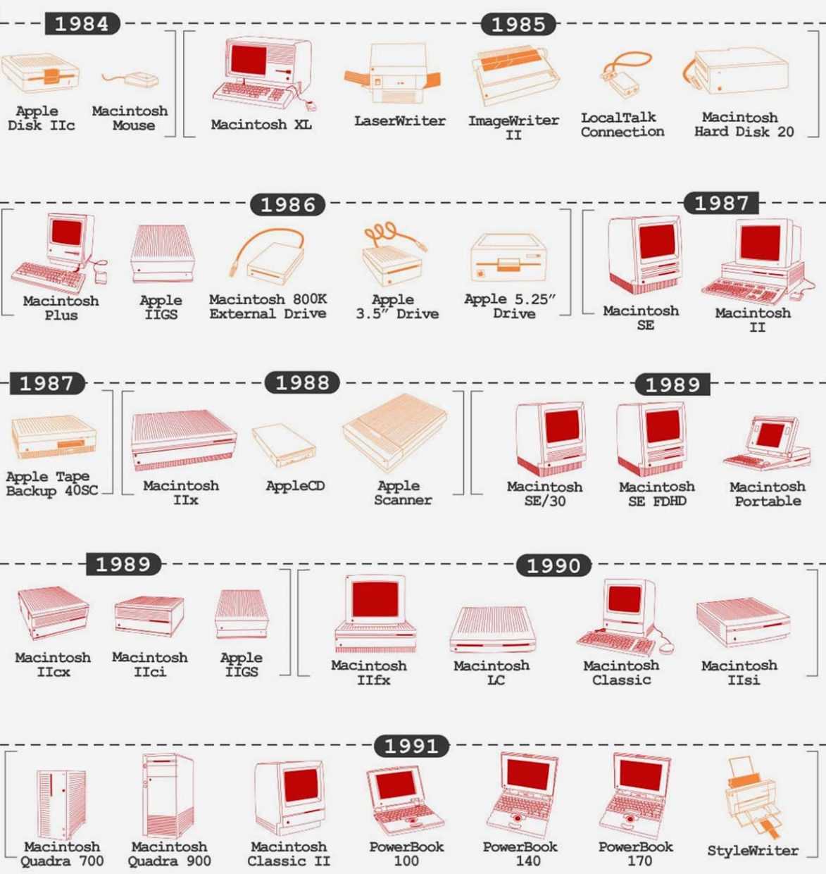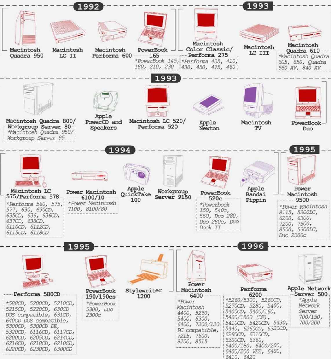 С момента ухода Стива Джобса из Apple в 1985 году, руководство компании создавало продукты, которые были совершенно лишними для линейки. Основным был Apple II, который вышел в 1977 и выпускался вплоть до 1990-х, хоть и имел разные модификации. Всё остальное создавалось исключительно для галочки.