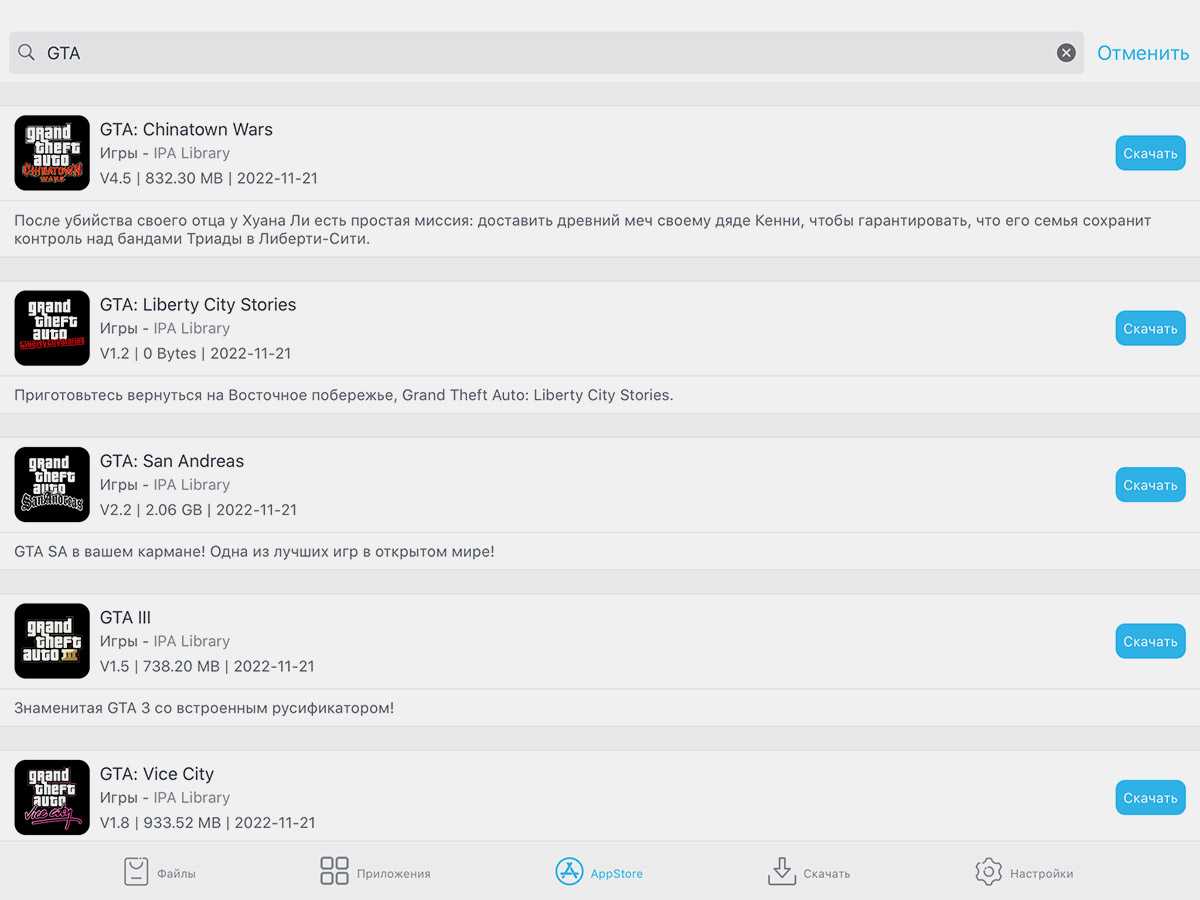С их помощью вы сможете установить на устройство любой найденный в сети файл программы или игру с расширением *.IPA.