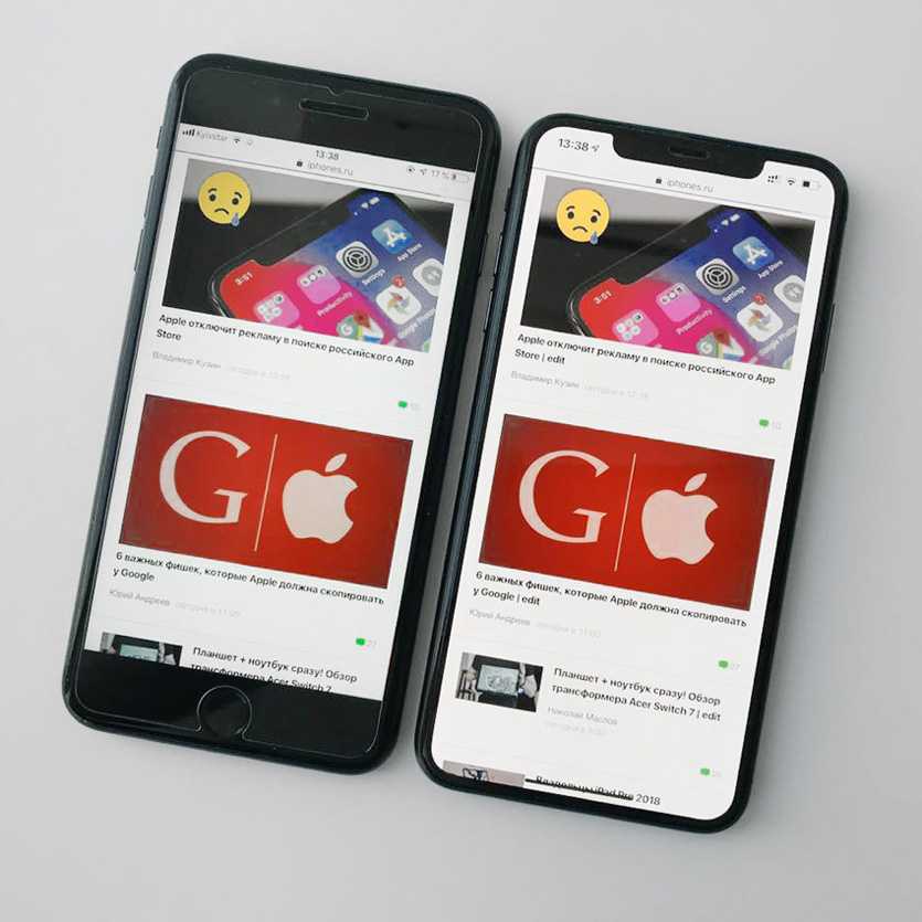 iPhone Xs Max почти такой же по размеру, как iPhone 8 Plus