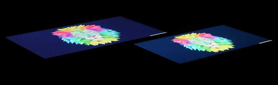 Сильное отклонение вдоль диагональной оси показывает, что перед нами самая обычная IPS-матрица. Да, качественная, спору нет, однако белёсым туманом она всё равно заплывает. Это вам не AMOLED.