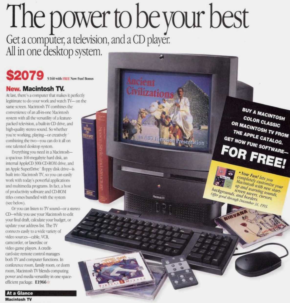 Довольно неожиданно в 1993 году в модельном ряду компьютеров Apple появляется ПК со встроенным ТВ-тюнером. Устройство получилось крайне спорным, обозреватели нещадно критиковали его, а пользователи так и не поняли финальную концепцию решения.