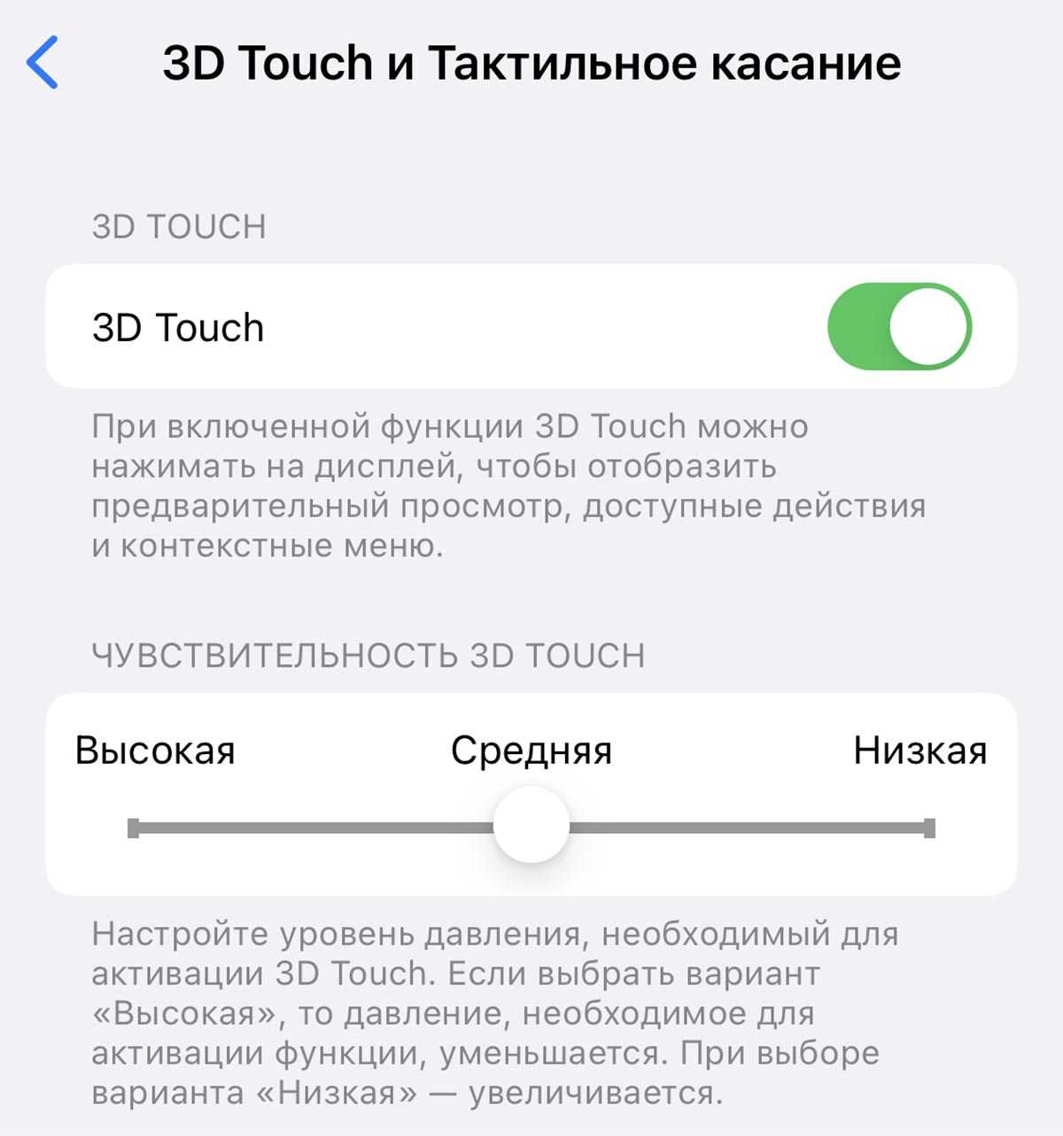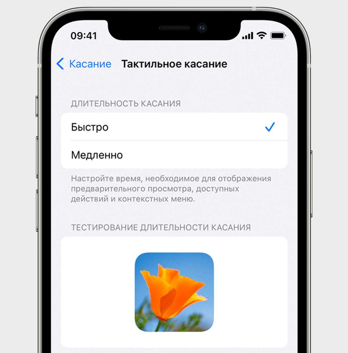и имеет раздел Тактильное касание по пути Настройки – Универсальный доступ – Касание.