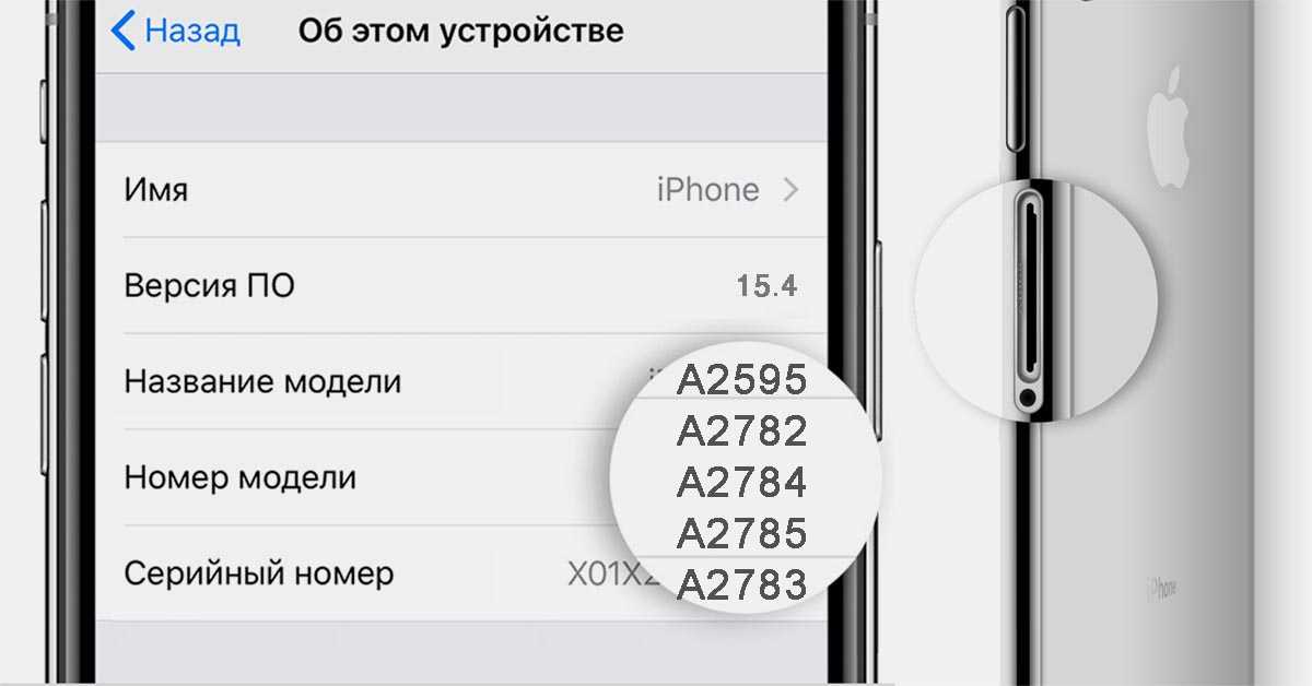 ◈ iPhone SE 2022 может иметь один из следующих номеров модели: A2595, A2782, A2784, A2785, A2783. Найти данные можно в системе (Настройки – Основные – Об этом устройстве – Модель), на корпусе под лотком сим-карты и коробке. Все номера должны совпадать для одного устройства.