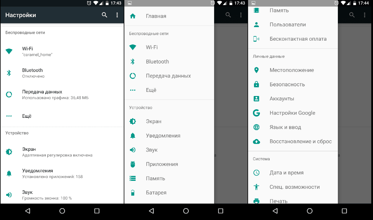 В настройках смартфона Google провела три больших изменения: добавила подсказки и рекомендации, вписала важную информацию в каждый раздел настроек и прикрепила «шторку» слева.