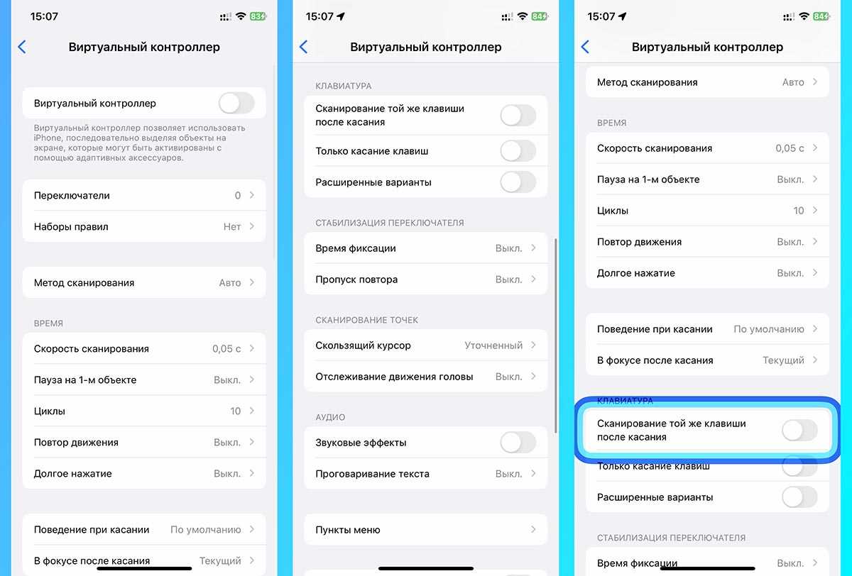 Как включить и пользоваться: откройте раздел Настройки — Универсальный доступ — Виртуальный контроллер и активируйте фишку. Ниже сможете настроить внешний вид выделения, параметры его перемещения, метод подтверждения действия.