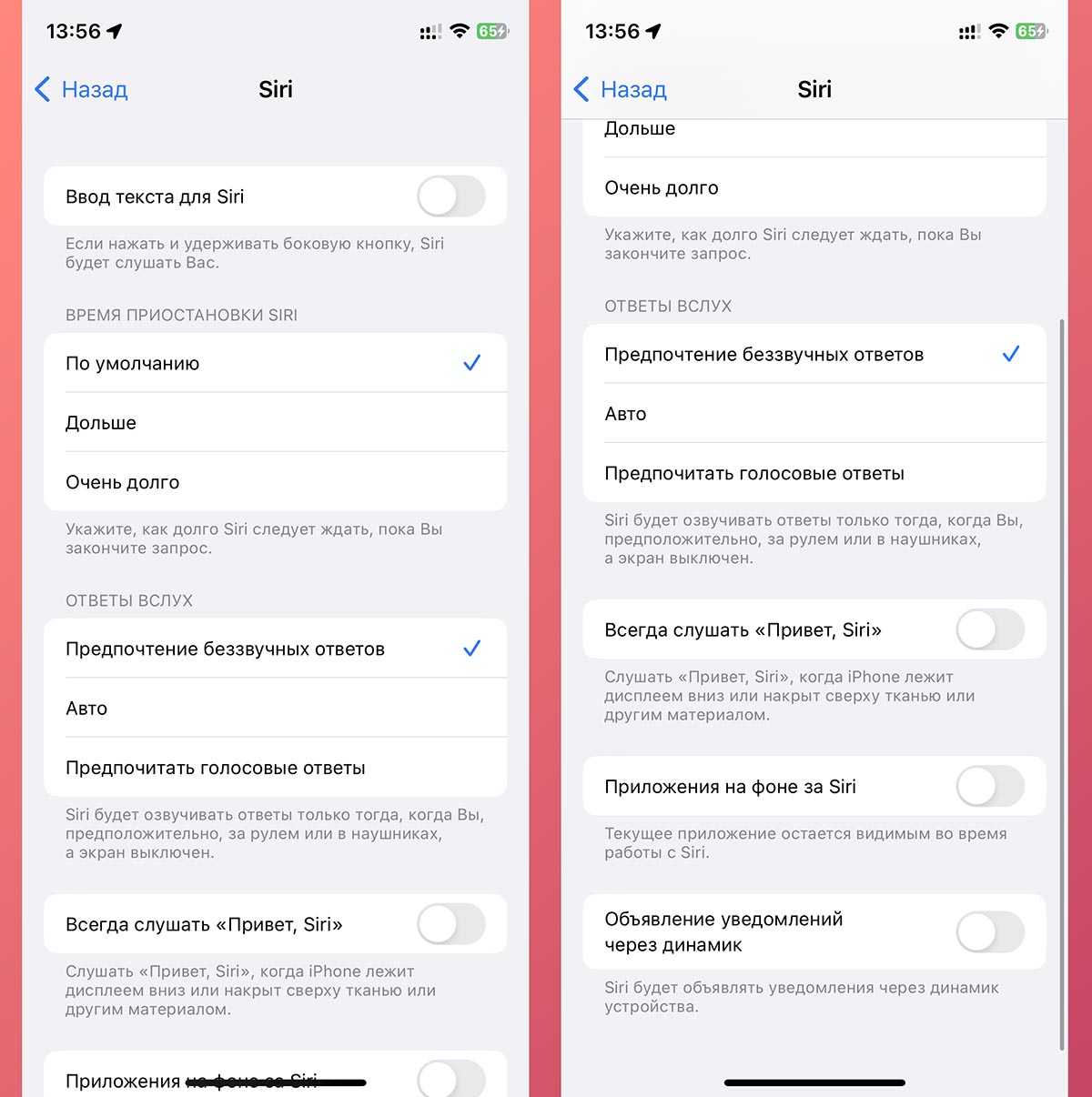 Время приостановки Siri – позволяет увеличить время ожидания голосовой команды.