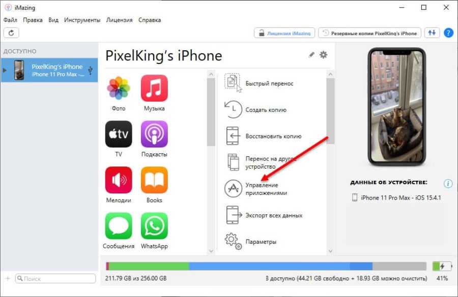 Среди доступных кнопок и функций появится и система «Управления приложениями», отображающая и уже загруженный на внутреннюю память контент, и тот, который непосредственно привязан к личному профилю (то есть, загружался ранее из Apple Store).