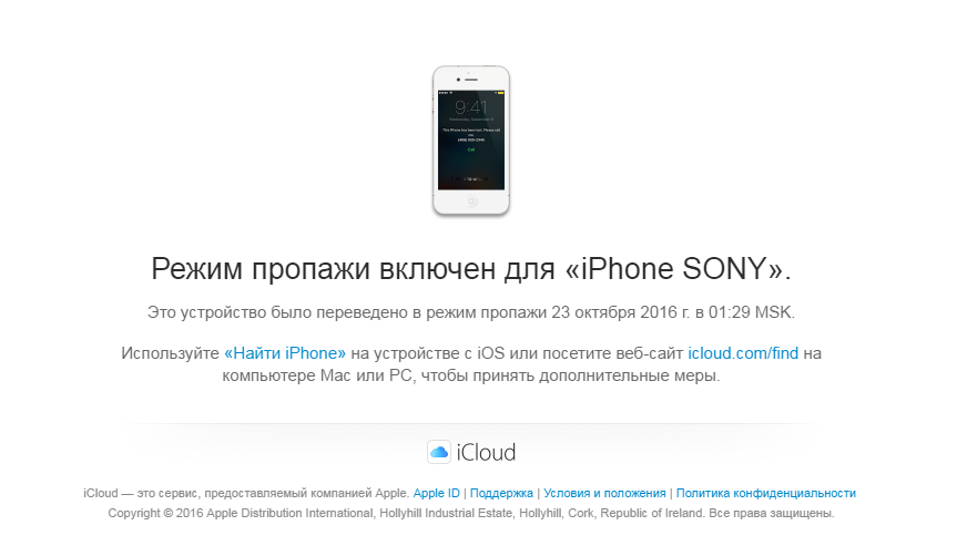 «Режим пропажи». С помощью такого режима можно заблокировать Айфон — им мы и воспользуемся.