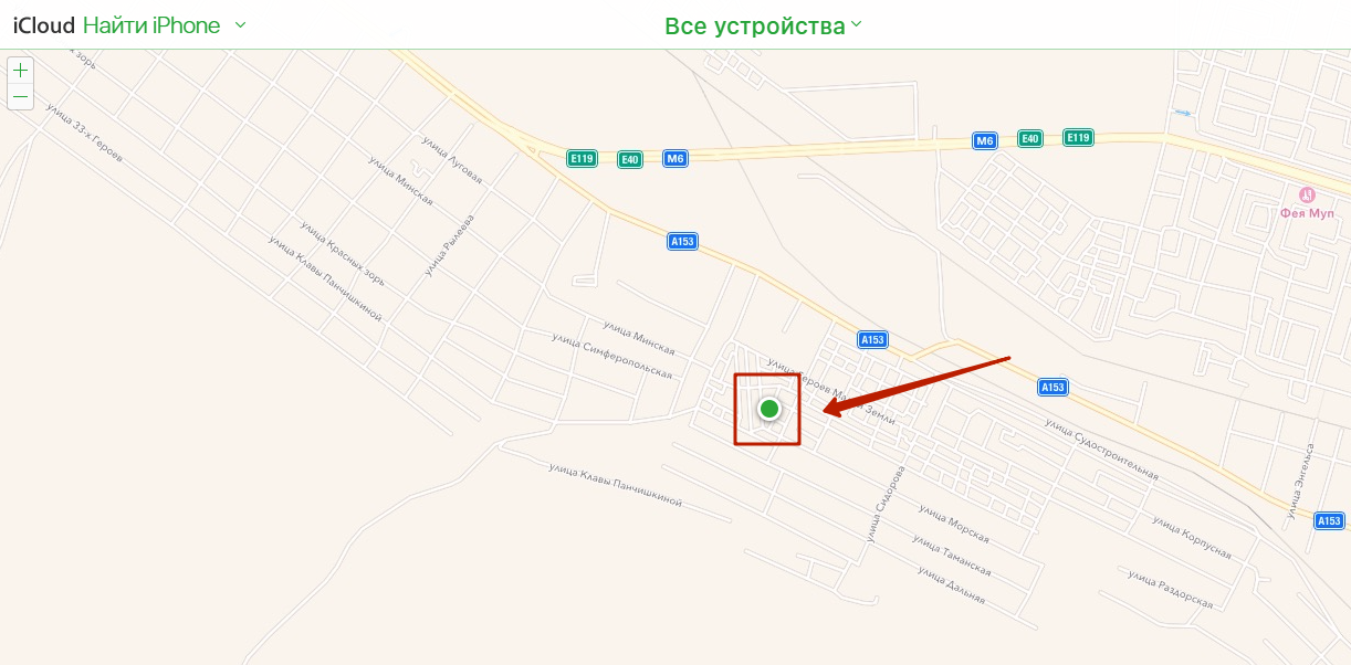 В результате пользователь увидит точку на карте — она показывает последнее местоположение Айфона.
