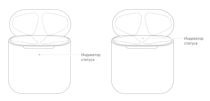 Понять, на каком уровне заряда находится подключенный к питанию кейс, как с наушниками, так и без, можно по светодиодному индикатору состояния. На изображении ниже показано его расположение на разных моделях. Узнать же о том, что и в каком случае обозначает его желтый (оранжевый) или зеленый цвет, можно из отдельной статьи на нашем сайте.