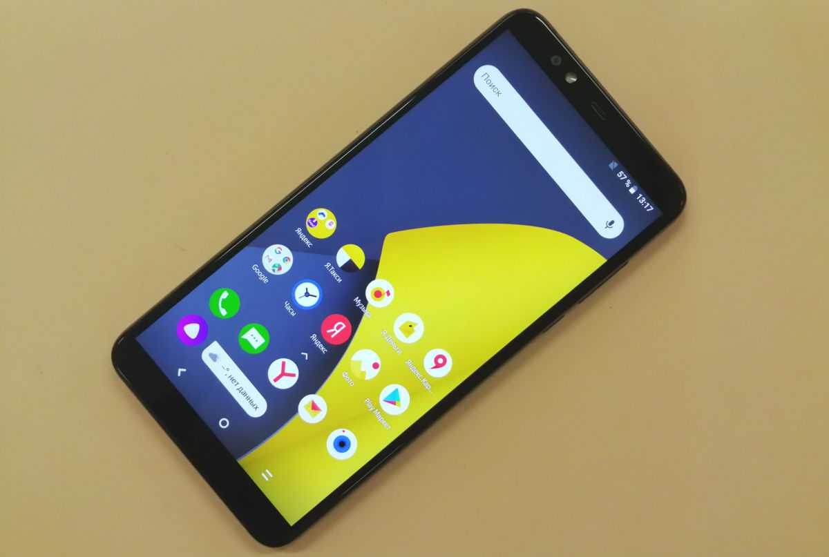 Дизайн модели ничем не примечателен: это стандартный гаджет с соотношением сторон 18:9, небольшими боковыми рамками и глянцевым корпусом, который быстро собирает отпечатки пальцев. Спинка покрыта защитным стеклом Gorilla Glass, которое не боится царапин. Челки у модели нет, и мы считаем это плюсом — иначе смартфон сразу стали бы сравнивать с iPhone.