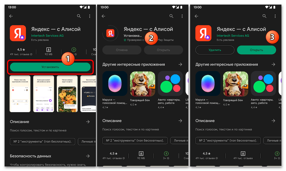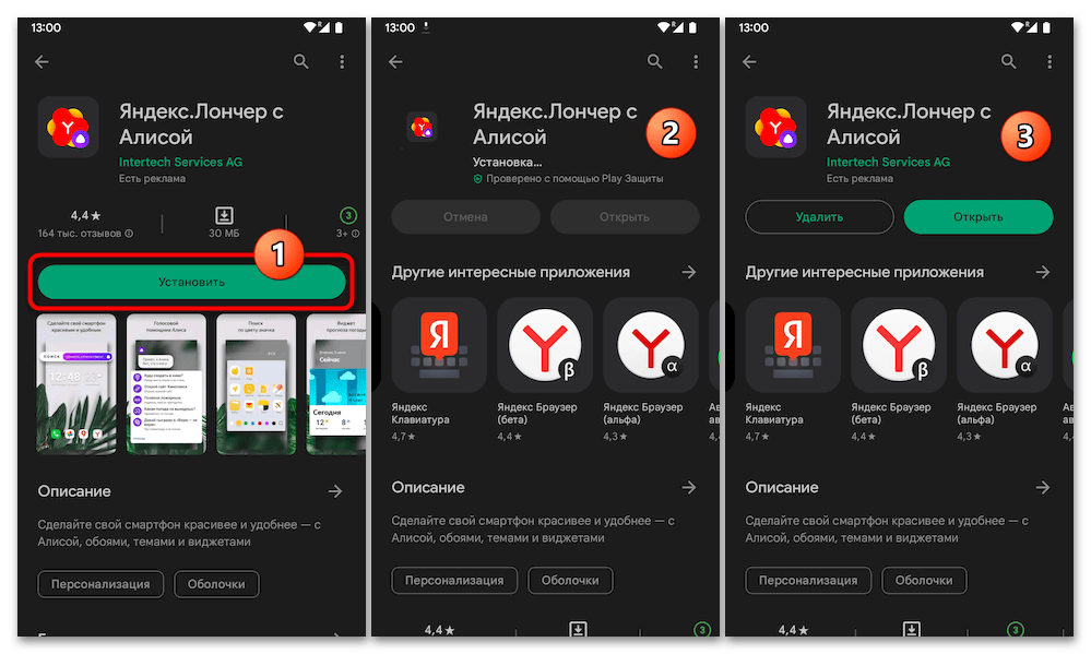 Стоит отметить, что из известных и надёжных каталогов Андроид-приложений Яндекс.Лончер с Алисой представлен только в Гугл Плей Маркете. Если же Магазин мобильного софта от Google не доступен на девайсе, для получения целевого решения можно, к примеру, воспользоваться функциями либо загрузить (лучше и безопаснее всего — по второй из представленных выше ссылок) на устройство, а затем развернуть APK-файл продукта.